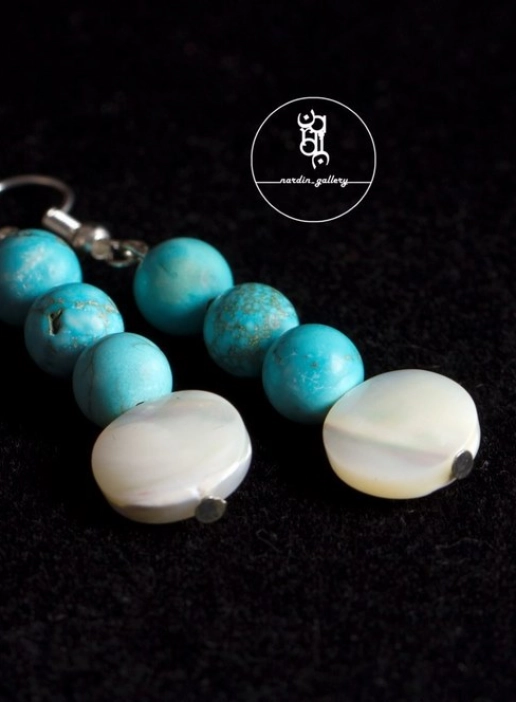 جزئیات: گوشواره فیروزه تبتی وصدف