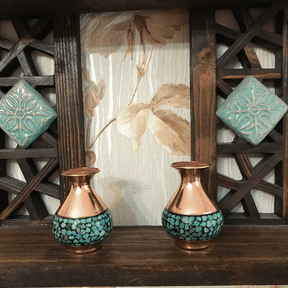 جزئیات: گلدان مسی فیروزه کوبی کوچک