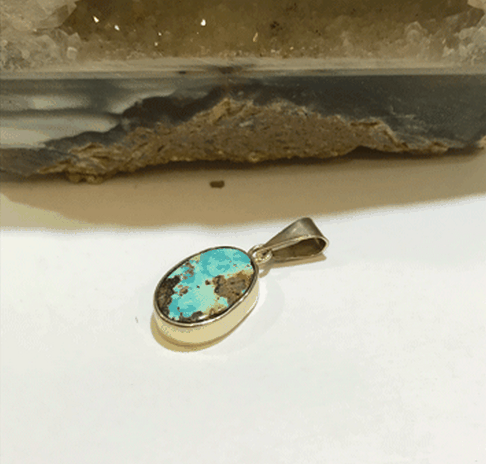 جزئیات: آویزفیروزه نیشابوری با قاب نقره