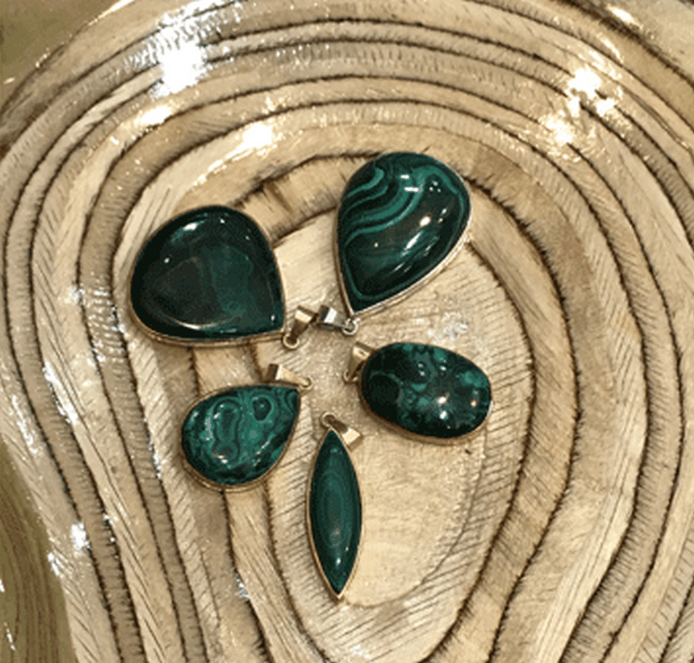 جزئیات: آویزهای مالاکیت در تراشهای مختلف با قاب نقره قیمت برای یک عدد میباشد