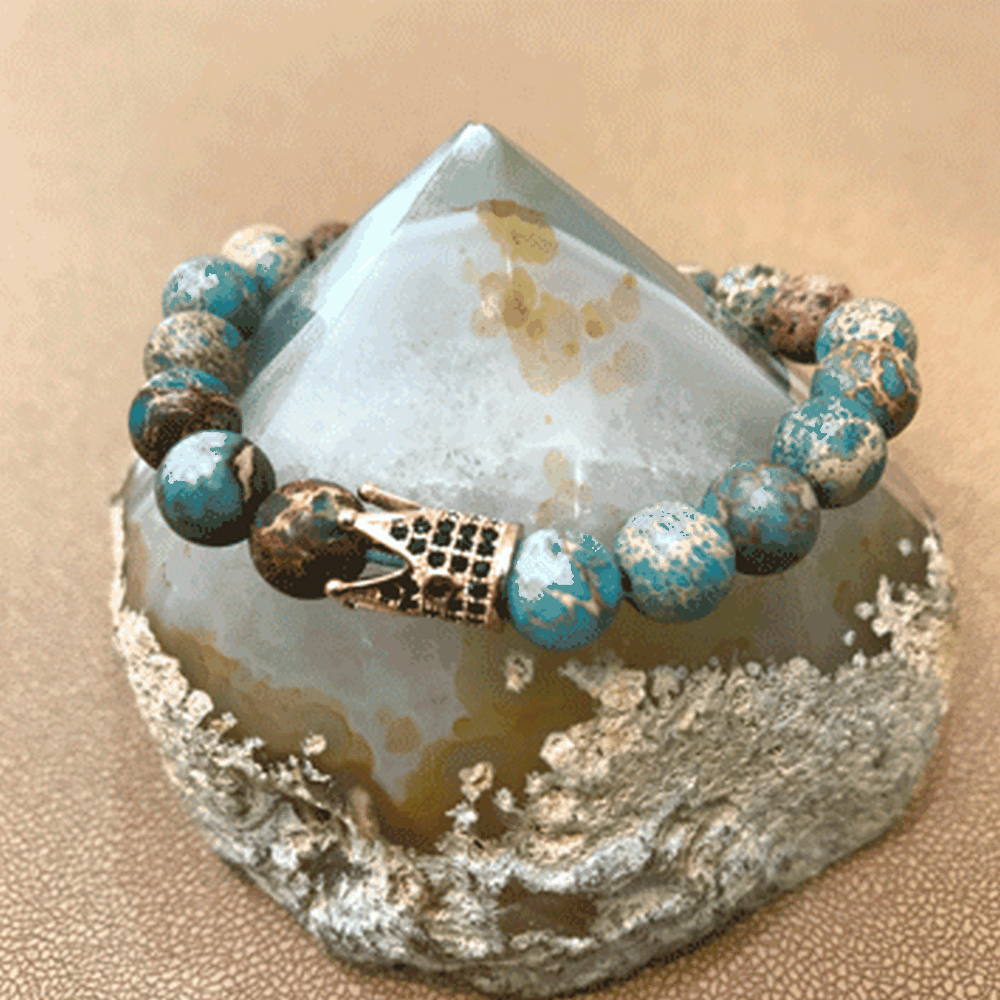 جزئیات: دستبند فیروزه آفریقایی با اکسسوری تاج و بی نهایت نگین دار