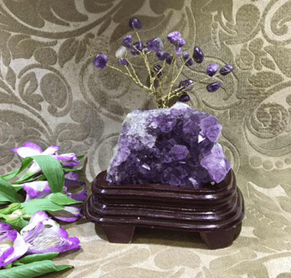 جزئیات : راف آمیتیست برزیلی با درختچه کوچک آماتیست روی پایه چوبی