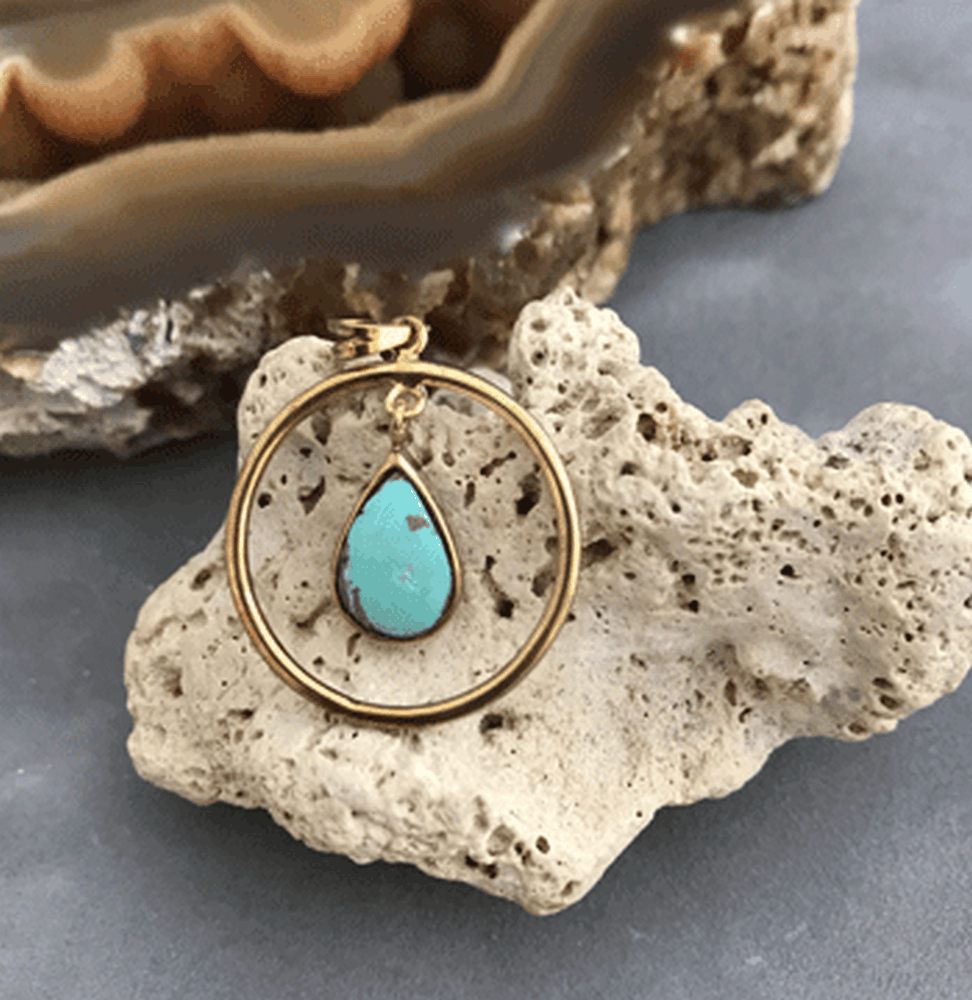 جزئیات: آویزفیروزه نیشابوری با قاب نقره وآبکاری طلایی